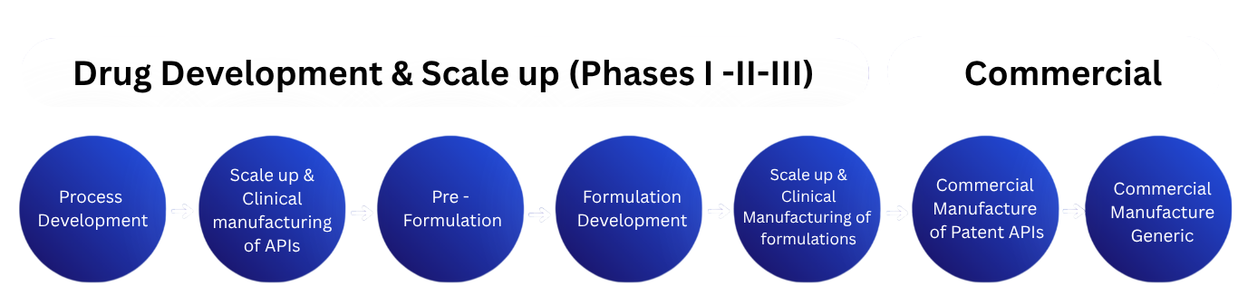 - Commercial manufacture of on-patent APIs and Intermediates: actively partnering in drug development efforts through custom manufacturing of APIs and Intermediates and participating in process research like scale-up of manufacturing.